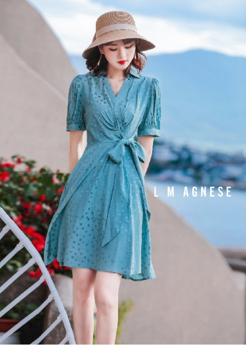 如果你喜欢轻熟风又或者是想尝试一些更青春的穿搭感觉,那么这一款连衣裙或许更加适合你。糖果蓝配色不像红蓝撞色那样具有掠夺性,在夏季它显得柔和俏皮了许多。蝴蝶结收腰设计让可爱元素在轻熟风里显得理所当然。五分袖的袖口加宽设计可以更好地隐藏住“拜拜肉”,塑造完美身形。